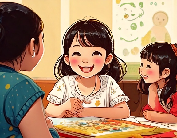 人とのコミュニケーション力向上、社会のルールの把握のために、集団活動のなかで子ども同士での意見交換を行い、聞く力、意見を言える力を育んでいます。