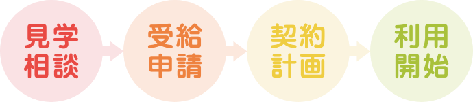 担当者よりご契約⼿続きをさせて頂き、お⼦様の状況に合わせて個別⽀援計画を作成し同意を得て利⽤開始となります。